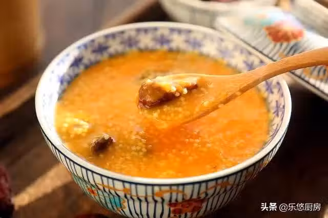 食材:小米150克、南瓜300克、紅棗幾顆、冰糖幾粒