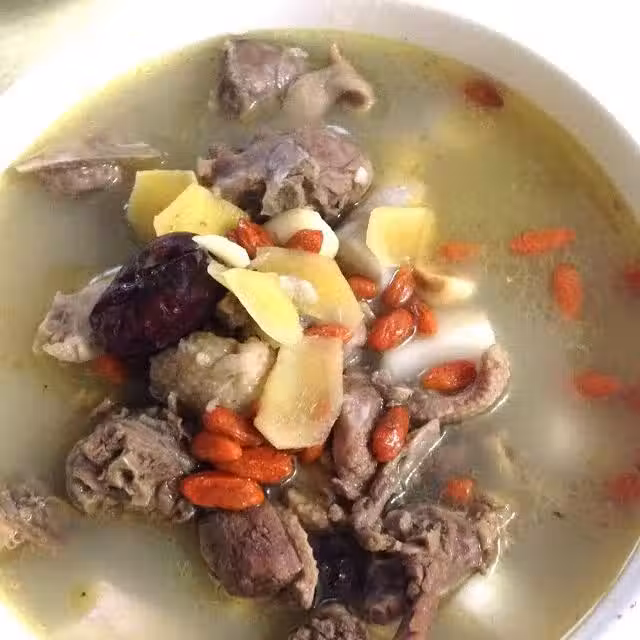 加入山藥、紅棗、枸杞,小火燉30分鐘,出鍋