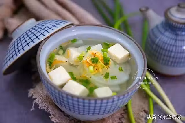 第二步:把白蘿蔔去皮切成片、嫩豆腐切成塊。