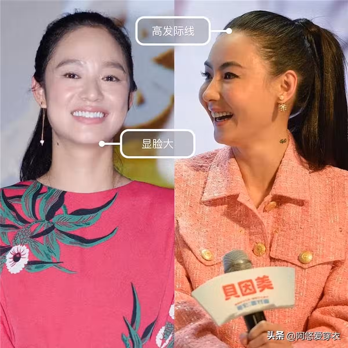 雖然馬尾簡單又好扎,但是有不少女性會發現,如果發際線比較高,或者是臉本來就很大,那麼扎這種高馬尾就會進一步去放大這些問題,像有的女人扎高馬尾也一併把額頭的碎發都紮起來,扎的馬尾特別緊,這樣就會把我們的發際線完全暴露出來,如果你已經有發際線後移,額頭高的問題就更不適合這種髮型了。