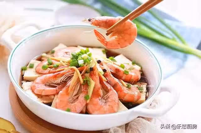 經過十分鐘的蒸製,鮮蝦的湯汁浸在豆腐里,讓整道菜吃起來又嫩又鮮,特別美味。