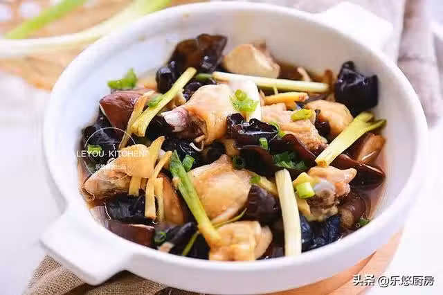第一步:準備食材。雞腿2個、香菇幾個、木耳幾個、姜適量、香蔥適量。