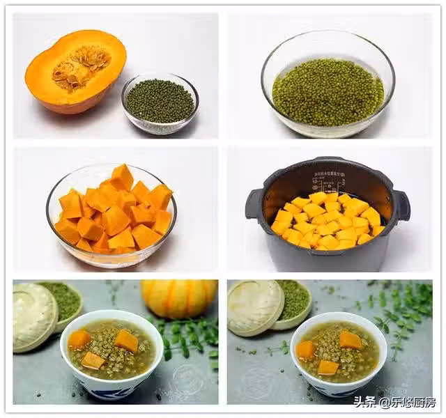 第四步:將綠豆和南瓜一起放入電飯鍋中,然後倒入1200毫升的清水,選擇「煮粥」功能即可。(如果用普通鍋來煮,可以將煮一鍋開水,然後將綠豆放入鍋中,煮至綠豆「開花」時,將南瓜放入鍋中,煮至南瓜變軟即可。如果喜歡甜一點的,還可以放一些冰糖)
