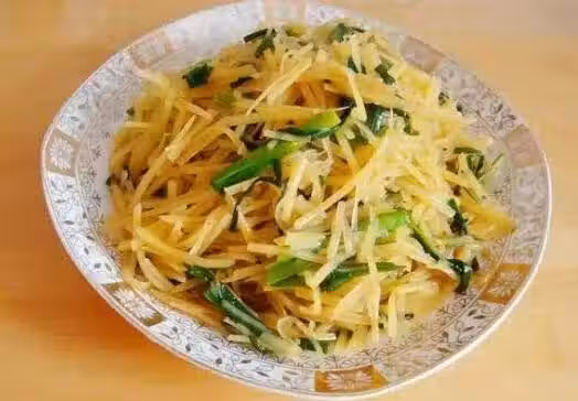 1、土豆洗凈切絲,韭菜洗凈切段。