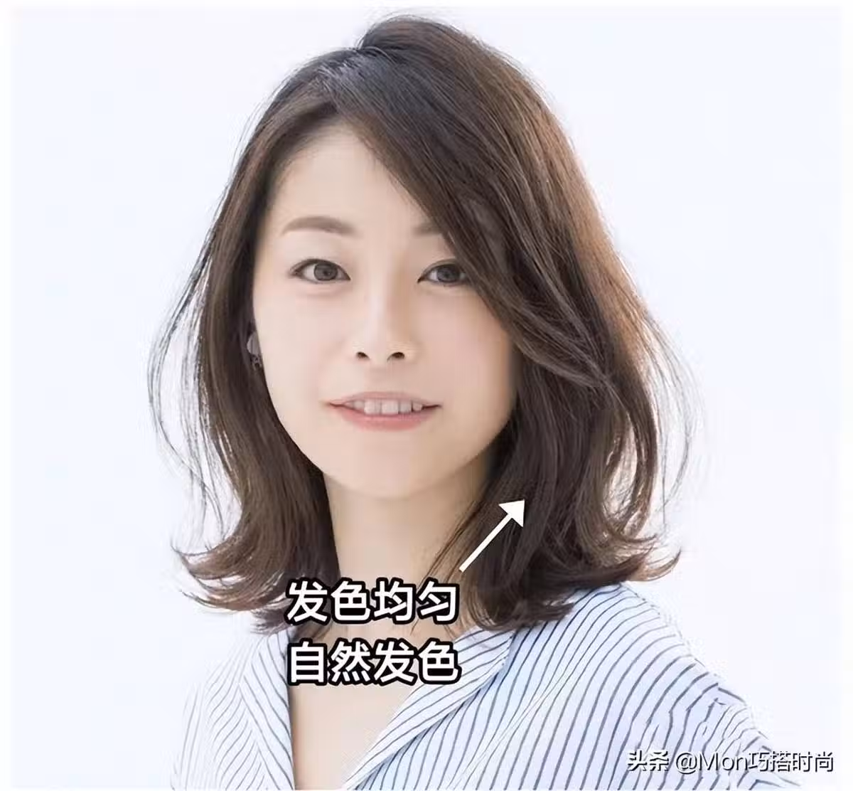 要選擇均勻自然的發色,推薦純黑或與膚色有差異的棕色調發色。自帶質感,還溫柔減齡,完全值得一試!