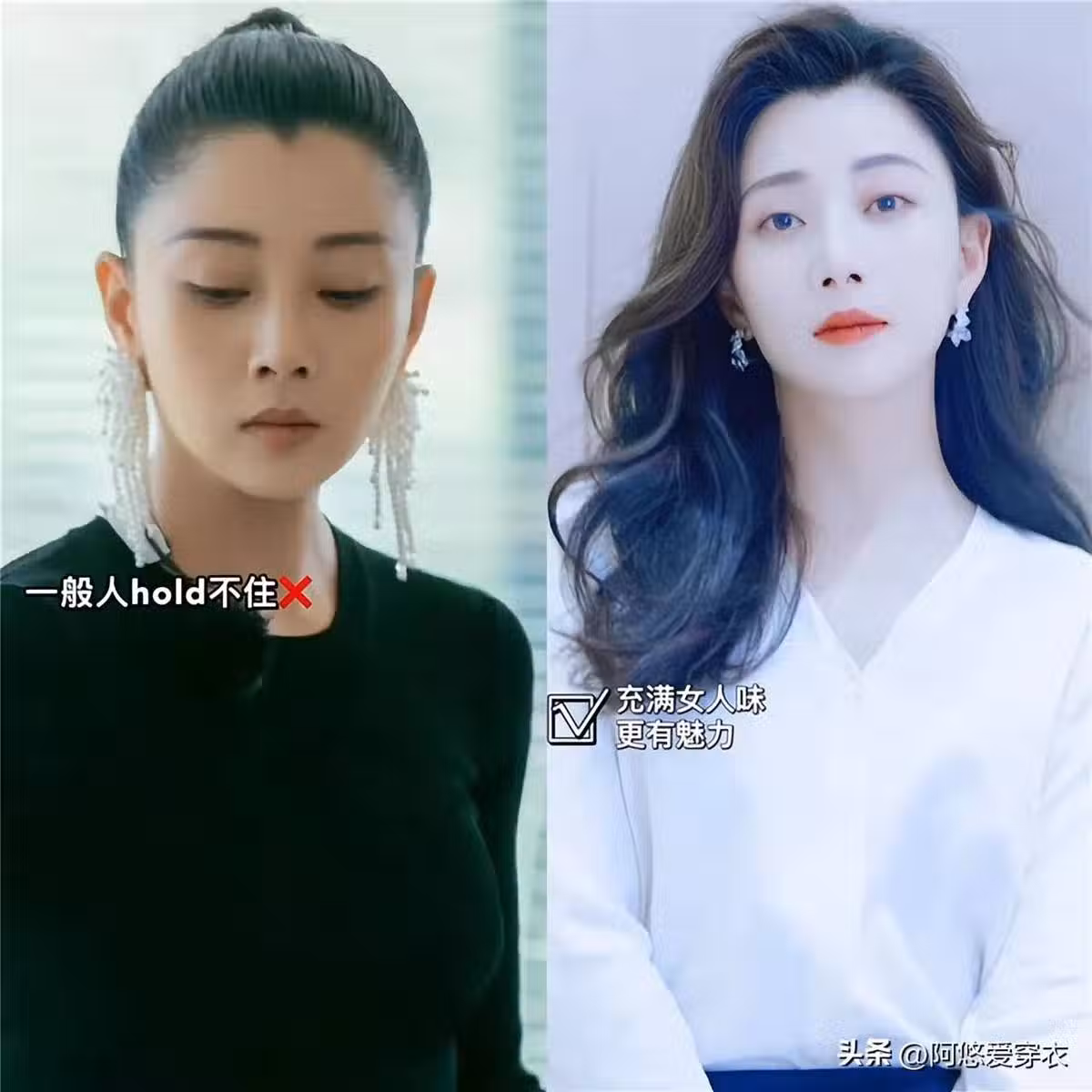 不管你是年輕女生還是上了年紀的中年女性,在選擇髮型這方面都有一些選擇要點是需要牢記的,首先想要通過髮型去營造出氛圍感,那麼我們的頭髮一定要有蓬鬆感,所以相比一味的去把頭髮紮起來,扎一個特別緊的馬尾,還不如就選這種燙卷的大波浪卷發,用大波浪的弧度增強氛圍感,視覺上髮量也會增多一倍。