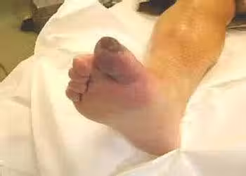 潰瘍的好發部位為前足底部,腳部一個疼痛點可能是糖尿病足部潰瘍的第一癥狀。