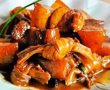 五花肉;腐竹;白糖;蔥姜蒜;料酒;醬油