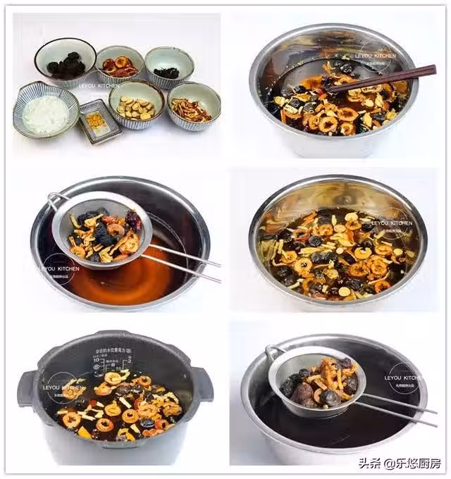 第五步:把所有食材連水一起倒入電飯鍋中煮30分鐘,然後把冰糖放入鍋中再煮20分鐘。第六步:將煮好的酸梅湯殘渣過濾掉(為避免浪費,煮過的殘渣,可以再加些水和冰糖煮一次哦)。