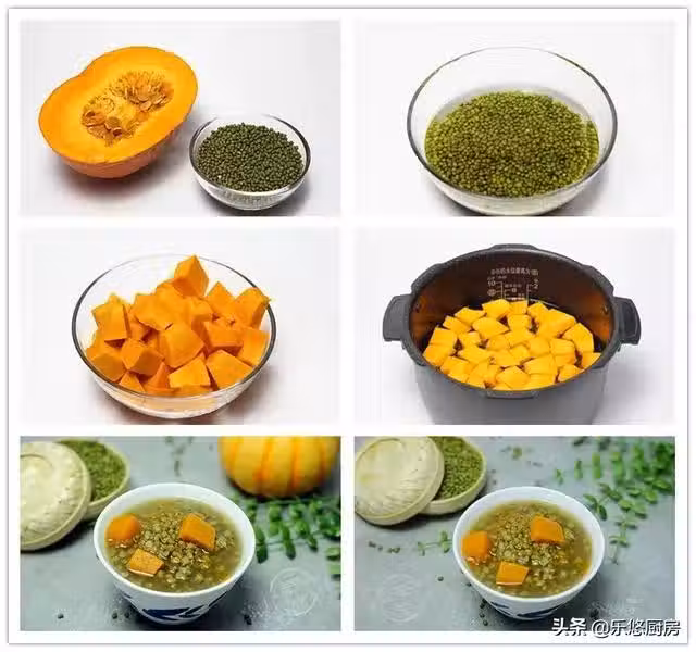 第四步:將綠豆和南瓜一起放入電飯鍋中,然後倒入1200毫升的清水,選擇「煮粥」功能即可。(如果喜歡甜一點的,還可以放一些冰糖)