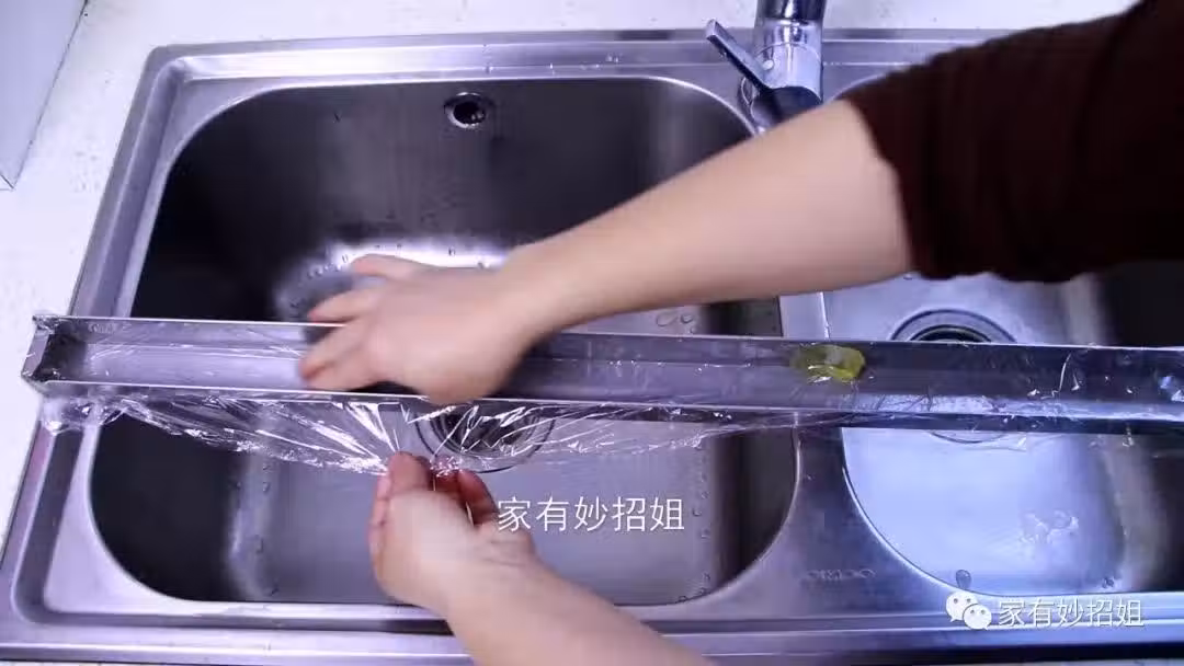 其實我們只需要利用上保鮮膜,將油盒簡單的處理一下,就不需要每次都清理油盒了。方法也很簡單,我們先把油盒清潔乾淨,然後再準備多一些的保鮮膜,用保鮮膜將整個油盒的底部都覆蓋住。