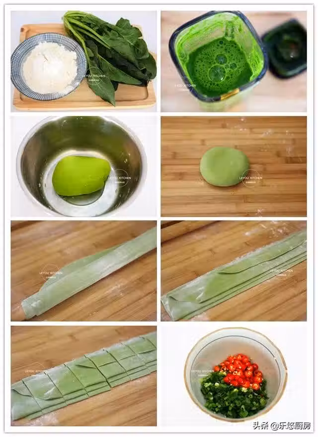 第八步:開始準備蘸水。取少許香蔥和紅辣椒切碎,放入大碗中。