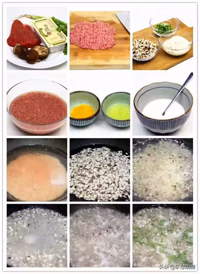 第八步:再燒一些水,把牛肉末、香菇末放入鍋中煮開。