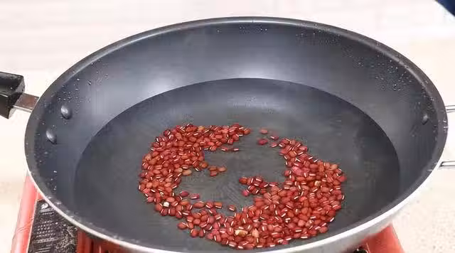 5:取一個容器,裡面先墊上一層油紙方便脫模,將煮好的紅豆鋪在碗底,鋪勻後用勺子把紅豆壓結實,再倒入麵糊,上鍋大火蒸15分鐘左右;