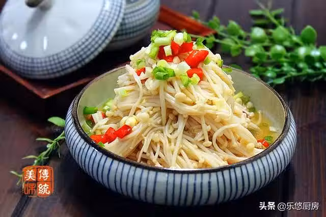第三步:鍋里倒入適量的水,水燒開後放入金針菇焯一下。(金針菇不適合焯太久,通常燙幾十秒就可以撈出來了,否則會影響口感)