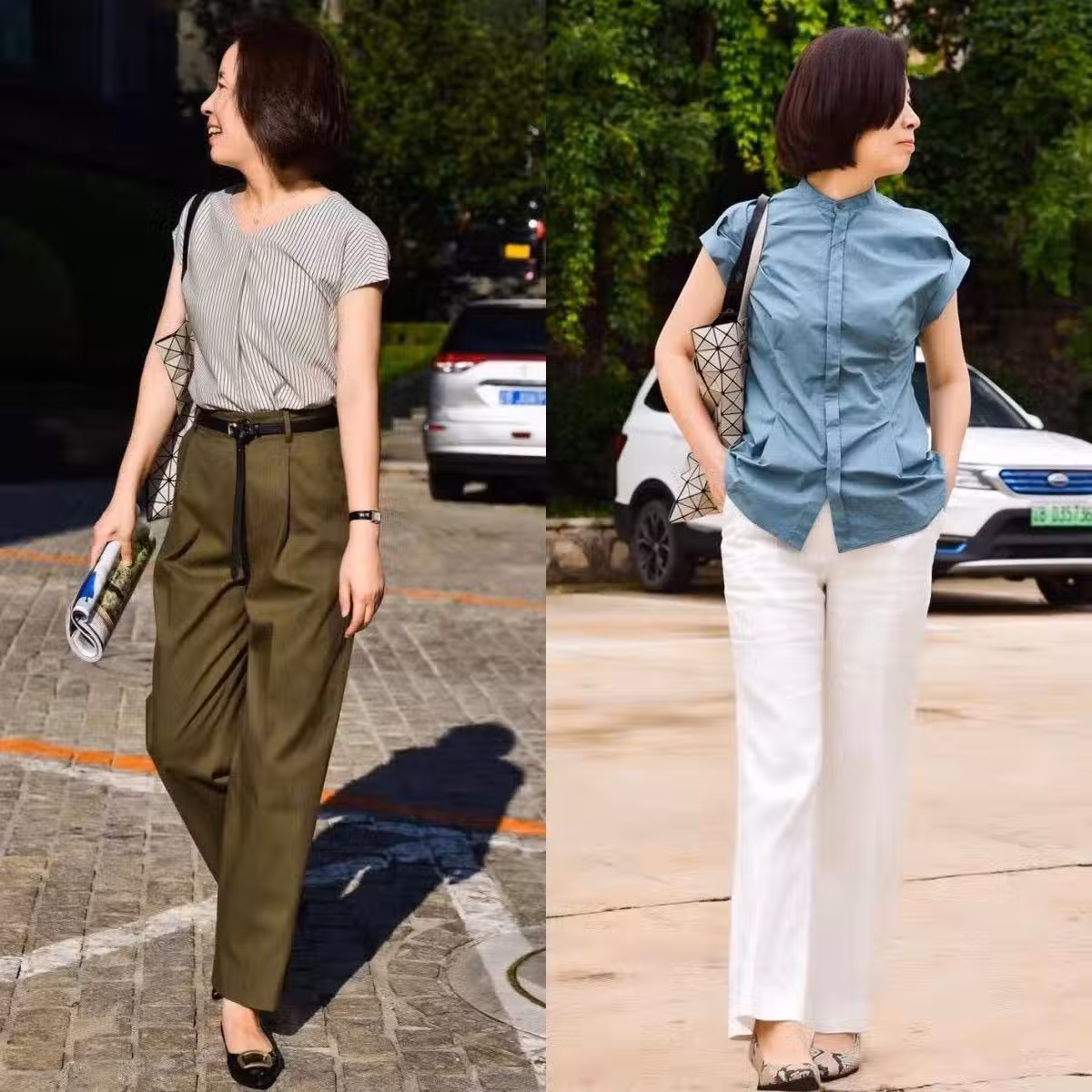 大齡女性的身材,可沒小年輕那麼苗條纖瘦,隨之而來的都是未新陳代謝的贅肉,所以緊身衣可是禁忌,寬松有度的上衣,才能更好的遮住贅肉感。