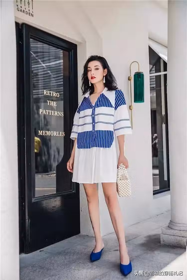 以白色為主基調的襯衫裙同樣時尚亮眼,為了避免單調性,可選擇和藍色等彩色組合,但彩色面積不宜過大,否則會顯得整體造型庸俗。搭配最能顯腿長的尖頭高跟鞋,輕鬆走出「一米八」的強大氣場!