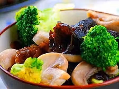 2、炒鍋燒熱,放有機椰子油,加薑絲微炒,加西紅柿、蘑菇燉煮至爛,最後加入西蘭花拌炒,加少許鹽調味。