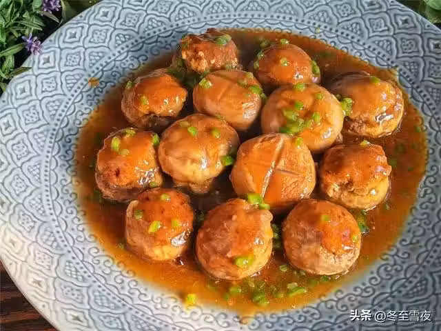 11.把芡汁淋在口蘑上即可,一道色香味俱全的釀口蘑就做好了。