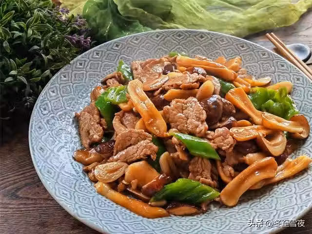 8.加入肉片一起翻炒均勻,再翻炒1-2分鐘,蘑菇和肉片的味道融合在一起,關火,盛出裝盤即可,一道色香味俱全的赤松茸炒肉片就做好了。