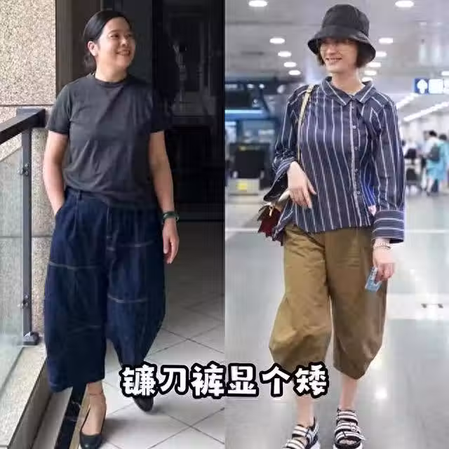 不管是體型微胖,還是小個子,到了四五十歲的年紀,都不建議大家穿著這種鐮刀褲了。寬鬆的版型,太過拖沓,穿起來顯臃腫,小個子穿上又顯矮,真是找不到任何優勢。