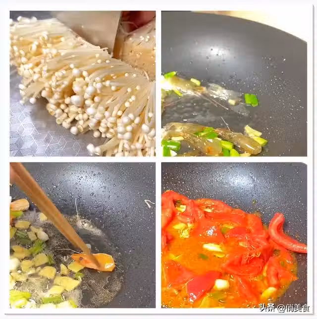 加金針菇,翻炒幾下,把切好的豆腐倒進鍋里,加適量生抽、適量老抽、適量食用鹽調個味,把調料翻拌均勻,再往鍋里倒沒過食材的清水;水燒開加蝦仁;2顆雞蛋攪拌成雞蛋液,倒進鍋里。