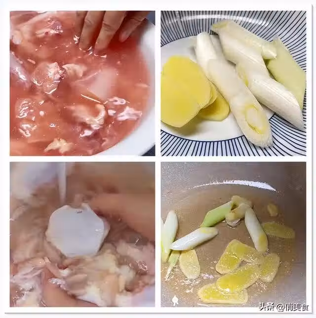 加雞塊,大火翻炒,炒至雞塊變小,顏色發黃,加開水,沒過雞塊,蓋上鍋蓋煮15分鐘,時間煮夠後挑出蔥姜,然後把雞湯倒進砂鍋加15-20顆蓮子。