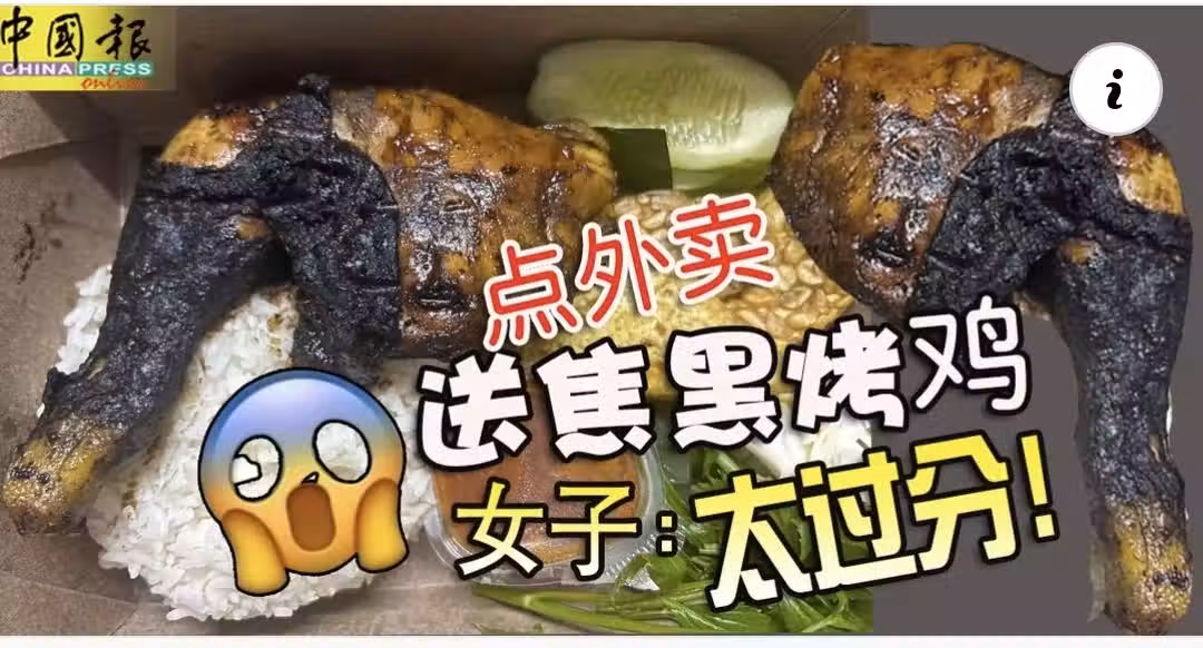 根據她上載的圖片,可看見烤雞的外皮已焦黑,影響了整體食物的賣相。