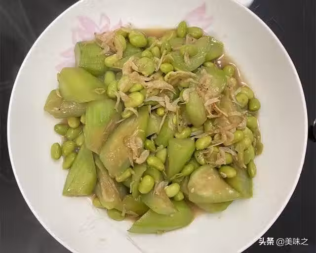 絲瓜一根、毛豆適量、蝦皮適量、鹽適量、生抽適量。
