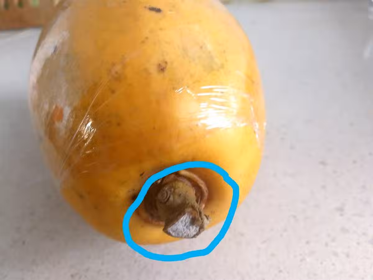 用手指輕壓木瓜最胖的肚子部分,木瓜肉稍微下陷些,手指拿起瓜肉彈起,這樣成熟度的木瓜生吃正適合,買回家2天之內要吃掉。如果用手指輕壓木瓜硬邦邦的,完全沒動靜,是生木瓜。如果手指一碰肉就塌陷,是熟過頭的,最好別買。外皮坑坑窪窪的木瓜,切開果肉已經變色,更不要買!