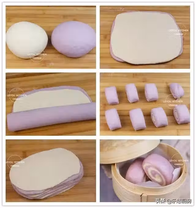 因為紫薯中有些水分,所以,紫薯麵糰需要的水量要比普通麵糰少一些。