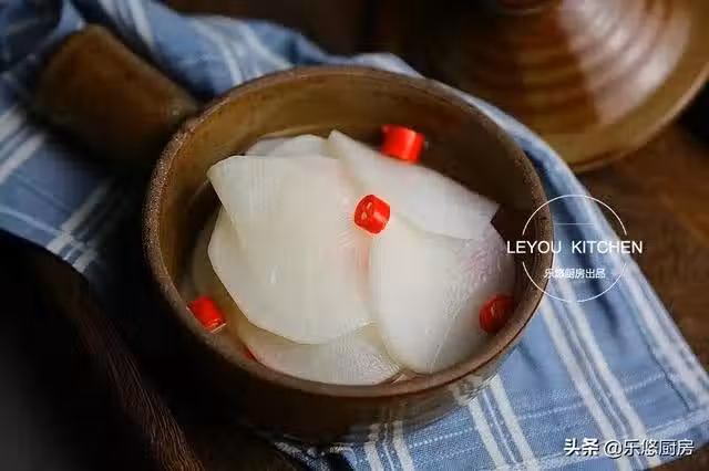 第三步:往白蘿蔔里放入1勺鹽,拌勻後腌制30分鐘。