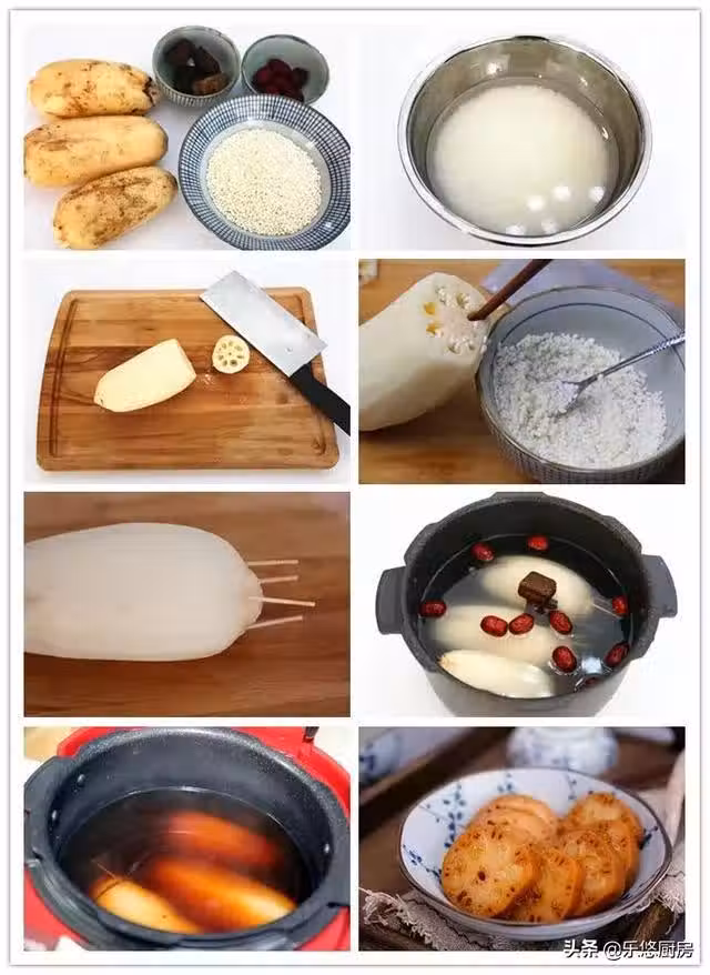 第六步:把蓮藕、紅糖、冰糖、紅棗一起放到電飯鍋中,再倒入一大碗清水,水量要沒過蓮藕。然後按下煮飯鍵,煮1個小時,然後燜1個小時。