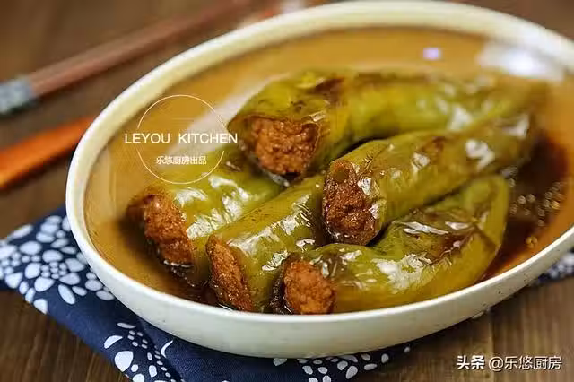 第一步:準備食材。尖椒8個、豬肉餡200克、蔥姜適量。(尖椒最好選擇直的一點,這樣裝肉餡的時候更好操作。)