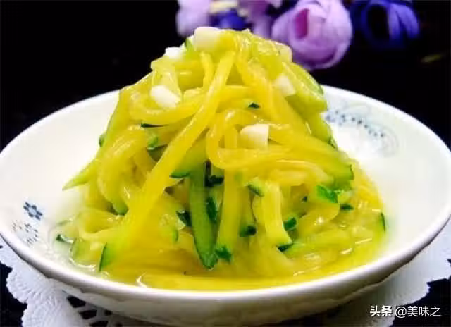 1、嫩南瓜洗凈切絲。