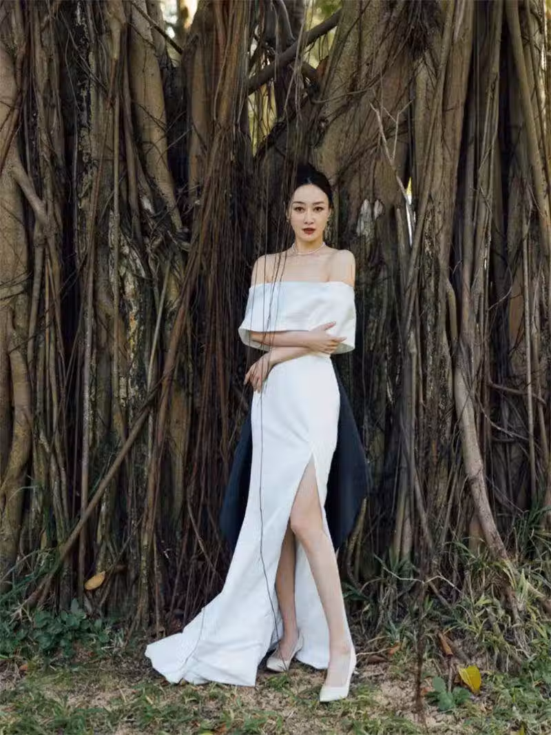 同理,身材比例不夠完美的情況下,尤其是五五分的身材,就多建議選擇裙子,裙子很適合腰長腿短的人,它能幫助修飾身形。趙子琪穿裙和褲的兩種狀態里,明顯裙子更能綻放她的魅力。