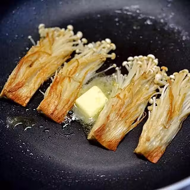 黃油融化後平鋪金針菇