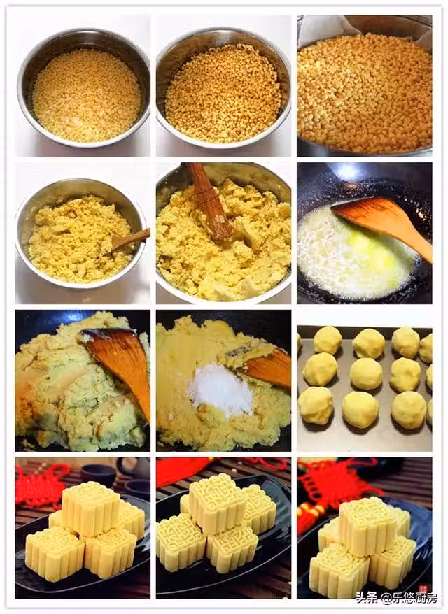 第九步:將綠豆泥晾涼後,分成50克的小團,然後用月餅模具壓出花樣即可。也可以分成30克的小團,再包20克的豆沙餡後壓出花樣。味道更好哦~