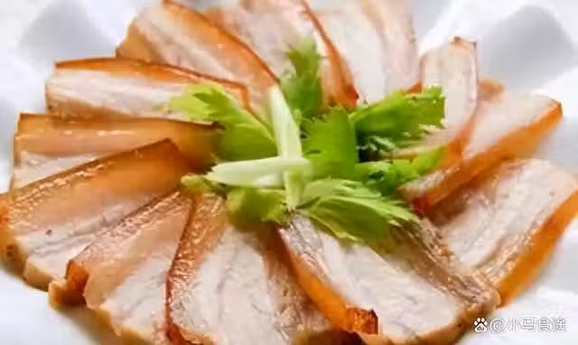 4.平底鍋燒熱,加入少許色拉油,下入鹹肉煎熟,取出稍涼1分鐘,即可切片裝盤,蘸甜醋汁食用。