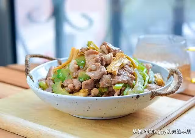 【主料】 梅花肉300克,苦瓜1根,腐竹200克,青辣椒1根
