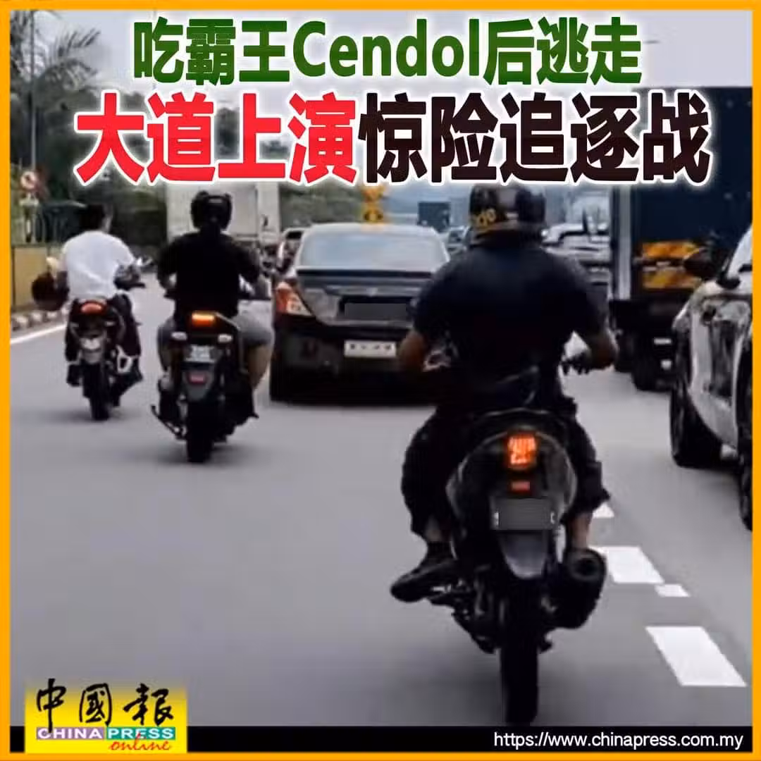 (吉隆坡28日訊)一群青年疑吃煎蕊(cendol)逃單後開車逃跑,結果被數名男子騎著摩哆猛追,雙方在路上上演觸目驚心的追逐戲碼,場面險象環生!