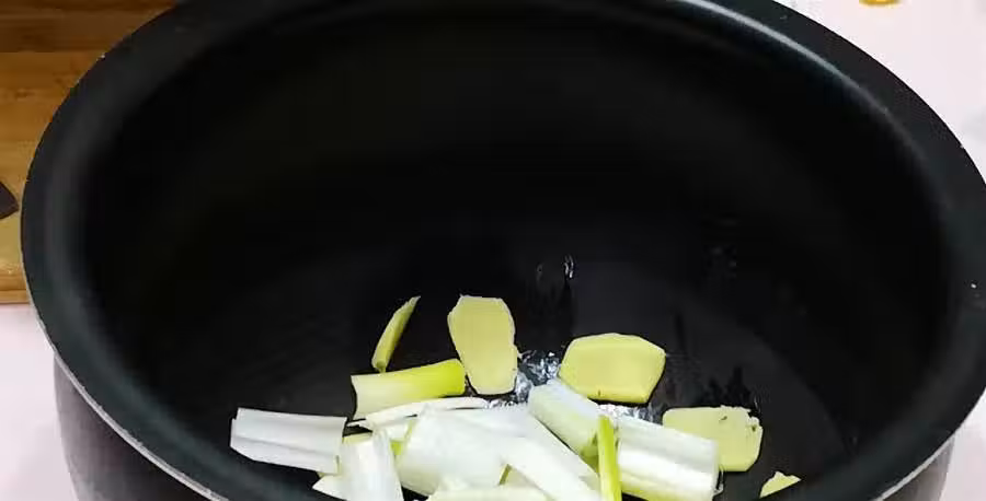 3.接著放入豬肉塊,再加入適量的鹽、蠔油、生抽和少許老抽調色,然後倒入啤酒,啤酒的量沒過豬肉塊即可,不必過多,但也別太少了。接著再扔入3個八角,一把冰糖,蓋上電鍋,按柴火鍵煮飯功能就可以了。