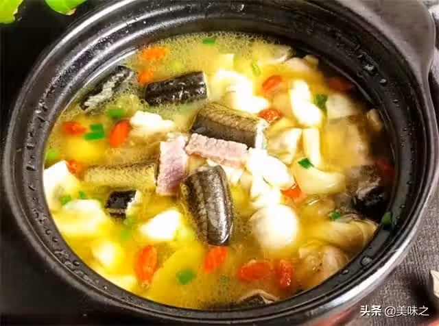 黃鱔3條、蘑菇100克、百葉結100克、鹹肉1小塊、調和油少許、料酒2勺、鹽少許、白鬍椒粉少許、蔥花少許、薑片3片、蒜瓣2個、枸杞子10顆。