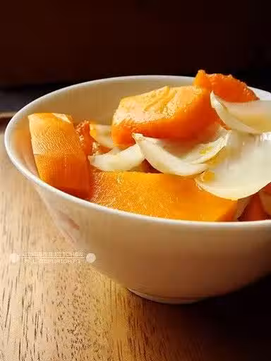 南瓜去皮洗凈切成塊;百合掰成瓣洗凈;將南瓜和百合放入鍋內,加入適量清水大火煮開