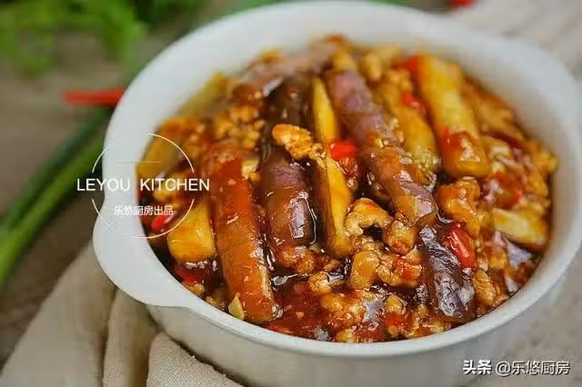 第四步:把茄子放入一個大盤中,開水上鍋,蒸8-10分鐘。