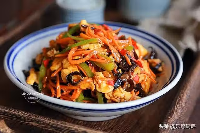 第三步:將胡蘿蔔切成絲、青椒或尖椒切絲、木耳切絲、蔥姜蒜切末。