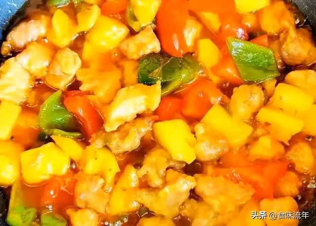 味美好吃的菠蘿咕咾肉,做法簡單又甜鮮,2碗米飯不夠吃