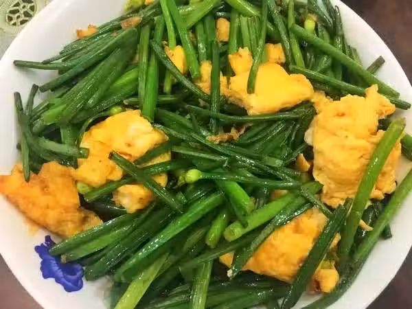 5.將打散的雞蛋和韭菜花一起翻炒,試下味道,即可出鍋了。