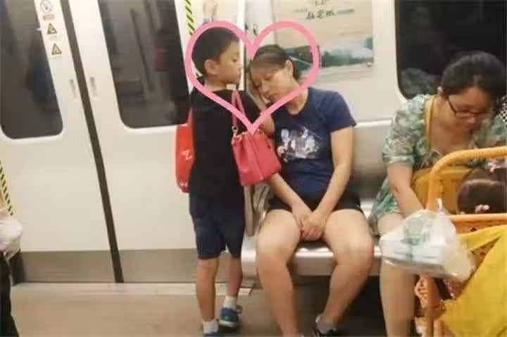 母子倆在捷運上的「行為」,惹周圍乘客「稱贊」,網友:這才是真正的炫富