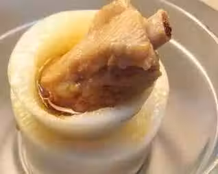 3、芋頭削皮後,挖空成杯狀,蒸10分鐘;
